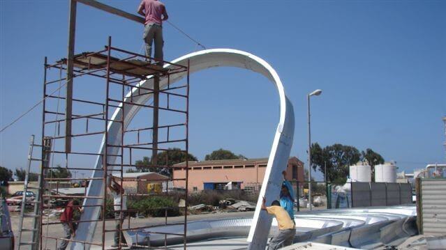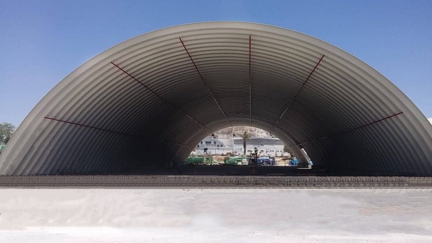 the shape of the arch provides the structure a great strength with the help of which it is possible to reach about 40 meters without columns, in addition, lighting, insulation, solar tiles and other additions can be hung on the structure without the need for reinforcements.